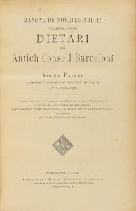 1892-1902. LIBRO: (BARCELONA-ARCHIVO). SCHWARTZ Y LUNA, FREDERICH; CARRERAS Y CANDI, FRANCESCH: MANUAL DE NOVELLS ARDITS VULGARMENT APELLAT DIETARI DEL ANTICH CONSELL BARCELONÍ. Barcelona: Imp. Herich i Companyia,...