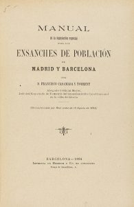 1894. LIBRO: (URBANISMO). CASAMADA Y TORRENT, FRANCISCO: MANUAL DE LEGISLACIÓN ESPECIAL PARA LOS ENSANCHES DE POBLACIÓN DE MADRID Y BARCELONA. Barcelona: Imp. Henrich, 1894. 8º mayor. 213 p. Enc. en media piel....