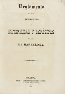 1853. FOLLETO: (BARCELONA). REGLAMENTO ESPECIAL PARA LAS CASAS UNIDAS DE MATERNIDAD Y EXPOSITOS DE LA CIUDAD DE BARCELONA. Barcelona: Imp. y Libr. Politecnica de Tomas Gorchs, 1853. 8º mayor. 36 p. Rústica. Las últimas 6 hojas...