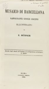 1863. FOLLETO: (BARCELONA). HUBNER, E.: MUSAICO DI BARCELLONA RAFFIGURANTE GIUOCHI CIRCENSI ILLUSTRATO. Roma: Tip. Tiberina, 1863. 8º mayor. pp. 135-172, 1 h., 1 grabado 20,5 x 32,5 cm. Rústica.