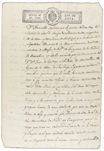1824. MANUSCRITO: (BARCELONA). TITULO DE ADMINISTRADOR DEL MONASTERIO DE MONJAS DE N. SRA. DE JUNQUERAS... A FAVOR DE PEDRO RUIZ DE CASTAÑEDA. 2 folios manuscritos sobre papel sellado de 1824. Fernando VII da la administración...