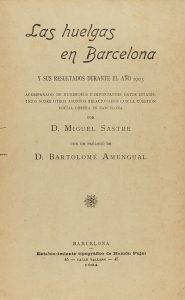 1904. LIBRO: (BARCELONA). SASTRE, MIGUEL: LAS HUELGAS EN BARCELONA Y SUS RESULTADOS DURANTE EL AÑO 1903. Prólogo de Bartolomé Amengual. Barcelona: Est. Tip. Ramón Pujol, 1904. 4º menor. 120 p. Rústica. Incluye la...