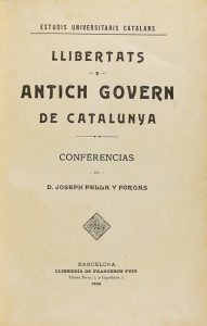 1905. LIBRO: (BARCELONA). PELLA Y FORGAS, JOSEPH: LLIBERTATS Y ANTICH FOVERN DE CATALUNYA.