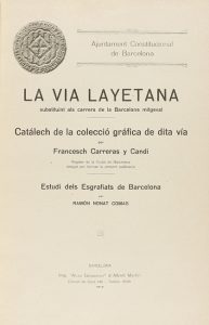 1913. LIBRO: (BARCELONA). CARRERAS Y CANDI, F.: LA VIA LAYETANA substituint als carrers de la Barcelona mitgeval. Catálech de la colecció gráfica per dita vía. Estudi dels esgrafiats de Barcelona, per Ramon Nonat...