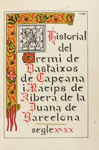 española, 1941. 4º menor. 131 p. Ilustr. con lám. fuera del texto. Enc. en medio pergamino, puntas, nervios, doble tejuelo, corte superior pitnados. [Más:] HISTORIAL DEL GREMI DE BASTAIXOS DE CAPÇANA I MACIPS DE RIBERA DE LA DUANA DE BARCELONA. S. XIII-XX. 126 p. Ilustr. con lám., fuera del texto. Enc. en medio pergamino, puntas, nervios, doble tejuelo, corte superior pintado.