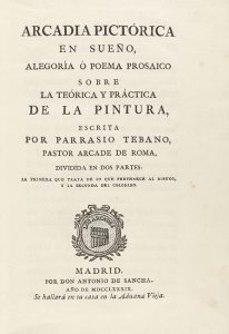 1789. LIBRO: TEBANO, PARRASIO: ARCADIA PICTORICA EN SUEÑO, ALEGORIA O POEMA PROSAICO SOBRE LA RETÓRICA Y PRACTICA DE LA PINTURA. Madrid: Antonio de Sancha, se hallará en su casa de Aduana Vieja, 1789. 8º mayor. 6 h. + 323 p....