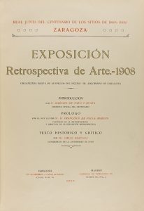 1910. LIBRO: (ARTE). EXPOSICION RETROSPECTIVA DE ARTE-1908. Intr. Mariano de Pano y Ruata. Prólogo Francisco de Paula Moreno. Texto histórico y crítico Emile Bertaux. Zaragoza: Tip. La Editorial-Madrid: Libr. de Fernando Fe,...