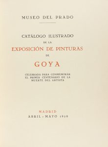 1928. LIBRO: (ARTE-GOYA). MUSEO DEL PRADO. CATALOGO ILUSTRADO DE LA EXPOSICION DE PINTURAS DE GOYA. En el 1er Centenario de la muerte del artista. Madrid: s.i., 1928. 4º mayor. 116 p., 4 h. 76 láms. Bella enc. firmada por Roig...