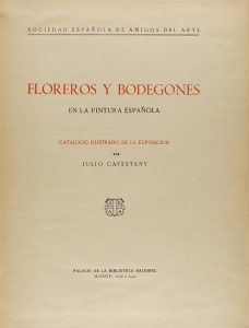 1936 y 1940. LIBRO: (ARTE). CAVESTANY, JULIO: FLOREROS Y BODEGONES EN LA PINTURA ESPAÑOLA. CATALOGO ILUSTRADO DE LA EXPOSICION. Madrid: Palacio de la Biblioteca Nacional, imp. Blass, 1936 y 1940. Folio menor. 192 p., 1 h....