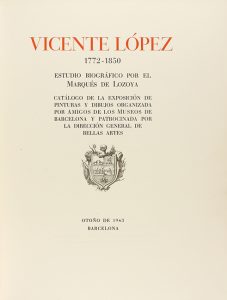 1943. LIBRO: (ARTE). LOZOYA, MARQUES DE:. VICENTE LOPEZ 1772-1850. ESTUDIO BIOGRAFICO POR... Catálogo de la Exposición de Pinturas y Dibujos organizada por amigos de los Museos de Barcelona y patrocinada por la Dirección...
