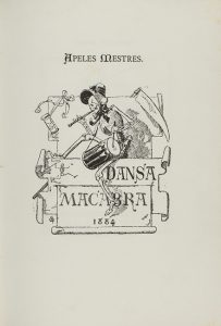 1884. LIBRO: (BIBLIOFILIA-ILUSTRACIONES). MESTRES, APELES: DANSA MACABRA. Barcelona: Imp. Celestí Verdaguer, 1884. 8º menor. 13 lám. de grabados del autor. Enc. en pergamino con el plano anterior rotulado, cortes...