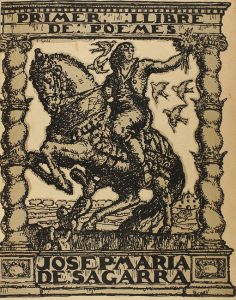 1914. LIBRO: (BIBLIOFILIA-ENCUADERNACIÓN). SAGARRA, JOSEP Mª DE: PRIMER LLIBRE DE POEMES. Barcelona: Tip. Neotipia, 1914. 4º. 101 p., 1 h. Ejemplar número 1 de la tirada de 7 en papel japón. Lleva dedicatoria...