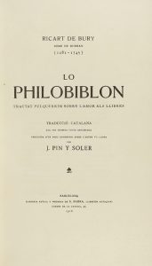 1916. LIBRO: (BIBLIOFILIA). PIN Y SOLER y BURY, RICART DE: LO PHILOBIBLON. Barcelona: Libr. Antiga y Moderna S. Babra, 1916. XXII + 136 p., 4 h. Ilustr. con lám., fuera del texto. Enc. en medio pergamino, nervios, corte...