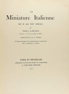 1925. LIBRO: (BIBLIOFILIA). D´ANCONA, PAOLO: LA MINIATURE ITALIENNE DU Xe AU XVIe SIÈCLE. Trad. M. P. Poirier. Paris y Bruxelles: Ed. G. Van Oest, 1925. 4 h. + 128 p., + 2 h. + XCIII lám. Intonso. Rústica....