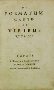 Vossius Isaac, De poematum cantu et viribus rythmi. e poematum cantu. Et viribus rythmi. Oxonii: e Theatro Sheldoniano. Londini: Rob. Scot, 1673.