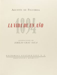 1944. LIBRO: (BIBLIOFILIA). FIGUEROA, AGUSTIN: LA VIDA DE UN AÑO. 1894. Barcelona: Gustavo Gili, 1944. 4º mayor. 167 p., 3 h. Ilustr. de Grau Sala. Enc. en tela, estuche. Edición numerada de 300 ejemplares. *M09-02.