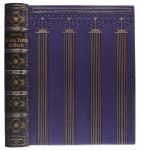 Folio mayor. XV + 119 p., 3 h., 5 h. blancas. Ilustr. con 11 grabados a color de Capmany. Cabeceras, capitales. Enc. en plena piel firmada por BRUGALLA, con hierros secos y dorados en ambos planos, nervios, lomera cuajada y con hierros secos, cantos y cejas, cortes dorados, guardas de seda , conserva las cubiertas originales, presentado en una petaca con perfiles de piel. Ejemplar del tiraje de 60 sobre papel de hilo, firmados por el artista. Este ejemplar lleva además un dibujo original con dedicatoria de R. Capmany y al final una suite con: un estado único firmado y dedicado, y las pruebas firmadas por R. Capmany de todos los grabados. *A13-04.