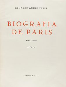 1945. LIBRO: AUNOS PEREZ, EDUARDO: BIOGRAFIA DE PARIS. Madrid: Talls. Penitenciarios, 1945. 4º mayor. 409 p. Láms. Enc. en plena piel. *M08-10.