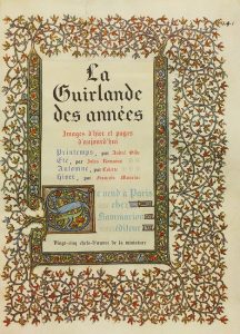 LA GUIRNALDE DES ANNÉES. ANDRE GIDE: PRINTEMPS; JULES ROMAINS: ETÉ; COLETTE: AUTOMNE; FRANÇOIS MAURIAC: HIVER. París: Ed. Flammarion, 1947. 4º. Edición sin paginar de unas 120 p. aprox. Profus. ilustr. con imitación de miniaturas. Enc. en cartoné edit. *EU02-26, EU02-09.