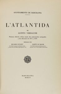 1946. LIBRO: (BIBLIOFILIA-LIT. CATALANA). VERDAGUER, JACINT: L´ATLÀNTIDA. Primera edición crítica según dos manuscritos autógrafos y las ediciones de 1877 y 1878 preparada por Eduardo Junyent y Martín de Riquer....