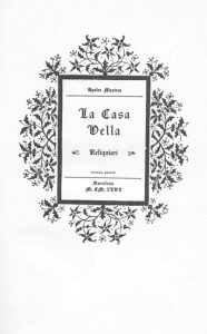 1946. LIBRO: (BIBLIOFILIA). MESTRES, APELES: LA CASA VELLA. RELIQUIARI. Barcelona: Ed. Millà, 1946. 4º menor. 147 p., 2 hojas. Con ilustraciones en texto, y láminas. Pergamino editorial en estuche de cartón. Segunda...