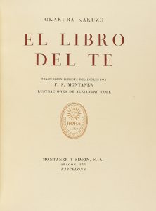 1946. LIBRO: (BIBLIOFILIA). KAKUZO, OKAKURA: EL LIBRO DEL TE. Trad. F. S. Montaner. Barcelona: Montaner y Simon, 1946. 4º menor. 89 p., 3 h. Ilustr. con lám a color de Alejandro Coll, fuera del texto. Enc. en pleno...