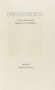 1946. LIBRO: (BIBLIOFILIA-BRUGALLA). SHELLEY, PERCY B.: EPIPSYCHIDION. Versió de Marià Manent. Aiguaforts de D. Olivé Busquets. Barcelona: Helikon, 1946. 4º menor. 65 p. Retrato de la autora y 5 láms. grabadas al...