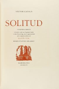 1946. LIBRO: (BIBLIOFILIA-DEDICATORIA-ENCUAD.). CATALÀ, VÍCTOR: SOLITUD. Prólogo escrito expresamente para esta edición por Lluís Vía. Retrato al carbón de la autora. Barcelona: Libreria Verdaguer, 1946. 4º menor....