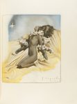 de Barcelona, 1946. Folio menor. XLVIII + 161 p. a dos tintas Ilustr. con lám. por Segrelles, coloreadas a mano. Tiraje de 100 ejemplares en papel de hilo con la filigrana de la entidad editora, numerados y nominados. Este ejemplar lleva además dedicatoria autógrafa del ilustrador. Enc. en plena piel por BRUGALLA, en dos colores en el plano anterior y con un grabado plateado de un ciervo, nervios, lomera cuajada, cantos y cejas, guardas de seda, corte superior dorado, conserva las cubiertas originales, presentado en una petaca con perfiles de piel. *A13-02.