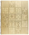 Balaguer. Barcelona: Asociación de Bibliófilos de Barcelona, 1947. Folio. 365 p. + 6 h. + 13 lám. a color + 5 lám. con capitales xilografiadas. Edición numerada y nominada de 100 ejemplares en papel de hilo con filigrana de la Asociación de Bibliófilos de Barcelona. Soberbia encuadernación firmada por BRUGALLA en pleno pergamino con hierros dorados de escudos heráldicos, en ambos planos, nervios, lomera cuajada, corte superior dorado, cantos, guardas de tela, presentado en una petaca de tela, con perfiles de pergamino. Obra célebre, escrita a partir de las Crónicas de Muntaner y Desclot por el III Marqués de Aytona, definido por Palau como el primer historiador moderno de la expansión catalana a Grecia. Se publicó por primera vez en Barcelona, en 1623, y ha sido objeto de numerosas ediciones. Palau 175668. *A12-11.