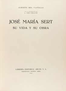 1947. LIBRO: (BIBLIOFILIA). CASTILLO, ALBERTO DEL: JOSÉ MARÍA SERT, SU VIDA Y SU OBRA. Barcelona-Buenos Aires: Librería Editorial Argos SA, 1947. Folio menor. Con la colaboración de A. Cirici Pellicer. 351 págs., 230...