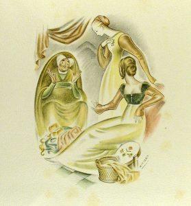 1948. LIBRO: (BIBLIOFILIA). LOPE DE VEGA: EL CABALLERO DE OLMEDO. Proemio por Joaquin de Entrambasaguas. Buenos Aires: Sade, 1948, impreso en los Tall. Horta de Barcelona. Folio menor. 113 p., 2 h. 10 bellas láminas,...