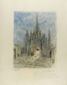 contiene: una carpeta con esbozos y dibujos originales de una de las planchas, la serie completa de todos los grabados y el visto bueno para el tiraje, tres series de descomposiciones de color y una punta seca no puesta a la venta. En rama, presentado en una caja en media piel, nervios, doble tejuelo. *A14-01.