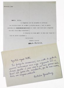 2 lettere (quella della Ginzburg autografa, quella di Moravia dattiloscritta con firma autografa). Una datata 7 febbraio 1984.