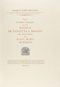 1952. LIBRO: (BIBLIOFILIA). MARES DEULOVOL, FEDERICO: LAS TUMBAS REALES DE LOS MONARCAS DE CATALUÑA Y ARAGON DEL MONASTERIO DE SANTA MARIA DE POBLET. Barcelona: Asociacion de Bibliofilos, 1952. 2 vol. en 4º mayor. 349...