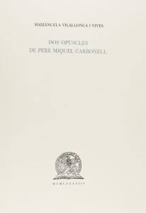1988. LIBRO: (BIBLIOFILIA). VILALLONGA I VIVES, MARIÀNGELA: DOS OPUSCLES DE PERE MIQUEL CARBONELL. Barcelona: Asociación de Bibliófilos de Barcelona, 1988. 4º. 232 p., 1 h. Contiene la reproducción facsímil de un...