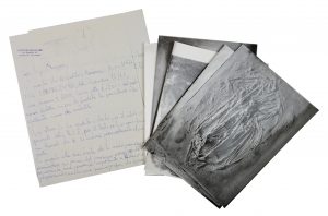 Manoscritti e dattiloscritti su carta intestata dell’artista. 3 pagine in totale, scritte al recto. Testi in francese e italiano. Dimensioni varie. SI AGGIUNGONO: Id., 5 fotografie in bianco e nero di opere dell’artista con firma autografa al verso. Datate 1959. I e II DOCUMENTO: Bonalumi, pittore, una delle figure di maggior rilievo dell'arte astratta del Novecento, scrive al gallerista: «[…] il quadro che ho spedito ad Anversa […] titolo: Concrezione, data creazione 10/60, valore dogana £ 5.000, prezzo netto £ 60.000 del quale sarà dedotta in caso di vendita la percentuale a voi spettante come contratto. Oggi stesso vi ho spedito i cliché per il catalogo generale della N. E. E. per il testo critico sono d’accordo con Russoli […]. Sto preparando una personale importante a Milano e sto preparando anche una monografica che vorrei fare come edizioni N. E. E.. Avrei anche la possibilità di organizzare una mostra in America […]» (lettera non datata).