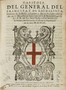 1680. LIBRO: (DERECHO CATALÁN). CAPITOLS DEL GENERAL DEL PRINCIPAT DE CATHALUNYA, COMTATS DE ROSSELLÒ, Y CERDANYA, FETS EN LES CORTS CELEBRADES EN LO MONESTIR DE SANT FRANCESCH DE BARCELONA... Barcelona: Rafel Figueró, 1680....