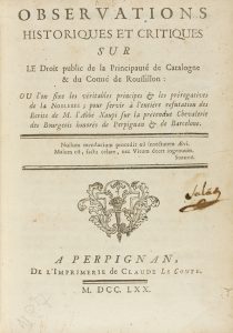 1770. LIBRO: (CATALUNYA-1ª EDICION). OBSERVATIONS HISTORIQUES ET CRITIQUES SUR LE DROIT public de la Principaute de Catalogne & du Comte´de Roussillon : Ou L´on Fixe Les Véritables Principes & Les Prérogatives De La Noblesse;...