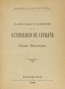 1889. LIBRO: (DERECHO CATALÁN). COROLEU, JOSÉ: LOS DIETARIOS DE LA GENERALIDAD DE CATALUÑA. Barcelona: Tip. La vanguardia, 1889. 8º menor. 336 p. Ilustr. con figuras en el texto. Enc. en media piel, corte superior...