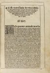 impressor de libros a costa de Alexo de Herrera mercader de libros, vezino de Medina del Campo, 1551. 4º. Portada grabada, con escudo, y restauración en el título, 7 h. + CXLIII fol., 1 h. Texto enmarcado, a dos columnas, letra góticA. Márgenes algo cortos. Bellísima enc. en plena piel, nervios, bellos mosaicos en ambos planos, y tejuelo, cortes dorados, guardas de seda. *M11-10.