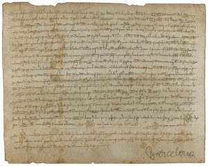 1217. MANUSCRITO: (OSONA). ESTABLECIMIENTO DE LA MASI GORG NEGRE DE VILALLEONS (Sant Julià de Vilatorta-Osona), realizado por los hermanos Bonanat i Bernat de Dosrius a Joan de Gorg Negre i su mujer Simon. 21 X 26,5 cm.