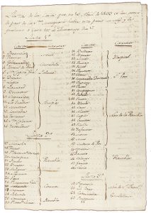 1803. MANUSCRITO: LLISTAS DE LAS CASAS QUE EN 15 ABRIL DE 1803 SE HA AVISÁ DE PART DE LA SRA. MARQUESA HABER ESTAT PARIT UN NOY. 2 h. manuscritas sobre papel, folio.