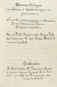 1819 ca. MANUSCRITO: (POESIA). FERRER, RAYMUNDO: OCTAVAS BILINGUES (sic.) CASTELLANAS Ó CATALANAS SEGUN SE PRONUNCIEN AL ARRIBO Y PERMANENCIA EN BARCELONA DE LA SERENISIMA INFANTA Dª MARIA LUISA CARLOTA. [Barcelona]. 8º...