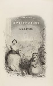 1854. LIBRO: (VIAJES-MADRID). GUIA DE FORASTEROS EN MADRID PARA EL AÑO DE 1854. Madrid: Imp. Nacional, 1854. 8º menor. 584 p. Retrato de la reina, frontis grabado [Sigue:] ESTADO MILITAR DE ESPAÑA E INDIAS. AÑO DE 1854....