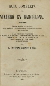 1866. LIBRO: (BARCELONA-GUIA). CORNET Y MAS, CAYETANO: GUIA COMPLETA DEL VIAJERO EN BARCELONA. Barcelona: Ed. I. López, 1866. 8º menor. 398 p. + 60 h. aprox. con publicidad de la ciudad. Enc. en media piel. *B03-07.