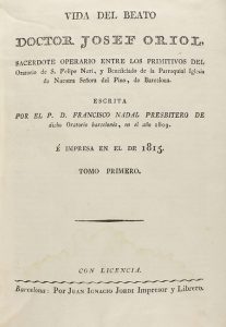 1815. LIBRO: (HAGIOGRAFÍA). NADAL PRESBITERO, FRANCISCO DE: VIDA DEL BEATO JOSEF ORIOL, SACERDOTE OPERARIO ENTRE LOS PRIMITIVOS DEL ORATORIO DE S. FELIPE NERI, Y BENEFIACIADO DE PARROQUIAL IGLESIA DE NUESTRA SEÑORA......