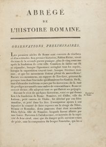 [1789]. LIBRO: (HISTORIA). [MILLOT, CLAUDE-FRANÇOIS:]. ABRÉGÉ DE L´HISTOIRE ROMAINE. [Paris: Chez Nyon, 1789.] Fol. menor. (sin las VIII p.) 190 p. (de 192)+ 48 grabados realizados por diferentes artistas (2 plegados)....