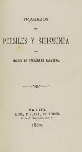 1880. LIBRO: (CERVANTINA). CERVANTES SAAVEDRA, MIGUEL DE: TRABAJOS DE PERSILES Y SIGISMUNDA. Madrid: Moya y Plaza edut., 1880. 12º. IX + 434 p. Bella enc. de P. Culebras, en plena piel, mosaico en los planos, nervios,...