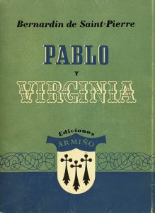 1945. LIBRO: (LITERATURA). SAINT-PIERRE, BERNADIN DE: PABLO Y VIRGINIA. Barcelona: Ed. Armiño, 1945,. 4º. 173 p., 2 h. Ilustr. con 6 bellas láminas en color de ALFREDO OPISSO. Enc. en cartoné, con estuche. Edición...